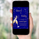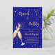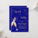 Um convite moderno, na moda e glamouroso para um Chá de panela de bolinho. Um fundo azul marinho com bolhas, um par de flautas, óculos. O nome é escrito com um moderno estilo escrito à mão. Personalize e adicione os detalhes da sua festa. Texto do ouro. Você pode alterar a cor do texto na ferramenta design.