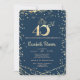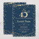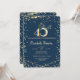 Dourada tiara e diamantes dourados num convite de festas de fundo azul marinho.