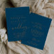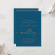 Este convite de casamento clássico de ouro azul e marinho é perfeito para um casamento rústico. O design simples e elegante apresenta tipografia de chic e rico em ouro queimado. Salve o papel, incluindo mais detalhes na parte traseira do convite em vez de em uma placa de gabinete separada.
