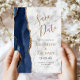 Convites Marinho Azul Dourado mármore de agate salve o cart