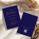 Procurando um convite de casamento com código qr? Apresentando nosso incrível convite para casamento do RSVP de Typografia Moderna Dourada Azul! Este convite expele a sofisticação do eterno com sua elegante tipografia moderna e elegante design minimalista. É a escolha perfeita para casais que buscam convites para casamento, ainda não declarados, de na moda que capturem a essência de um elegante tema de casamento moderno. Você pode criar um Código QR adicionando um site. Belo efeito digital de ouro no texto "Casamento de", perfeito para um elegante casamento azul marinho.