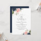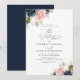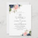 Um design azul marinho e azul escamoteado do tema do casamento floral com flores cor-de-água rosa e azul-marinho, perfeito para o seu casamento. Você pode alterar o texto, o tamanho do texto, a cor e a fonte neste modelo.