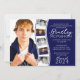 Convite para Graduação de Fotos, Azul Marinho Escuro e Branco, Único. Inclui slots de fotos para 6 fotos.
