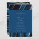 Design apresenta um elemento agate colorido impresso em tons de azul marinho e prata. Texturas de canvas azul marinho e brilho de falso prateado com script de caligrafia ou escrevendo de tipo. Excelente para as comemorações do casamento!