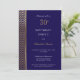 Convite de festas marinho azul e aniversário de 30 anos dourado com striped chevron moderno.