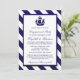 Estes convites são perfeitos para qualquer noiva e noiva planejando uma festa de noivado romântica ou chá pelo mar. O design apresenta um movimento branco de navio azul marinho num marinho náutico e fundo listrado branco. O simples modelo pode ser personalizado para se adequar ao seu evento especial e faria o anúncio perfeito para qualquer partido náutico temático, incluindo chás de panela, noivados, casamentos, aniversários e muito, muito mais.