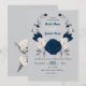 marinho romântico, flores e cinzas brancas e azuis e folhas flores florais convite para o casamento