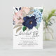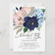 Lindas flores azuis Marinhos, azuis e poeirentas, chá de panela chá convite com uma fonte de caligrafia moderna. Sacudir nosso convite para o chá Bridal Tea para ver uma cor azul de água do marinho coordenadora de volta para um toque especial extra. Fácil de personalizar com as informações do seu partido.
