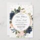 Convites Marinho Azul e Flores Cor-de-Rosa Esbranquiçadas C