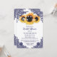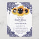 Chá de panela russo de marinho azul e girassol com flores de girassol, luzes de cordas e rendas florais. Itens correspondentes disponíveis para complementar este chá de panela floral azul elegante marinho.