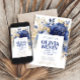 Convites Marinho azul e ouro elegante cor d'água floral de