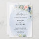 Marinho de Convite para Recepção de casamento Azul e Azul Cor-de-rosa-claro apresenta uma camada floral elegante de cor-de-água, decorada com rosas cor-de-rosa-marinho e cor-de-rosa-esbranquiçada, verde de eucalipto. O Design também apresenta um layout de fonte moderno - texto. Um arranjo floral correspondente é adicionado ao verso do carregar sobre o tema geral.