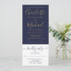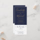 Um convite de casamento com nomes modernos de guião dourados e tipografia elegante num fundo azul marinho. O convite inclui um cartão RSVP que pode ser interrompido e detalhes de informações de convidado. Projetado por Thisnotme©