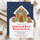 Este convite fofo e festivo apresenta uma bela casa de pão de gengibre decorada com doce vermelho e verde. Além disso, são adoráveis gengibres com presentes, vestidos com chapéus de Papai Noel e cachecol. Ao fundo está um céu azul marinho de inverno com flocos de neve em queda elegante. O texto combina fontes decorativas e sans serif para um aspecto na moda e moderno. Isto é perfeito para uma festa de decoração da casa de pão de gengibre.