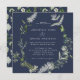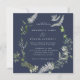 Marinho azul-boêmia botânica moderna e elegante cartão de convite para o casamento de folhagem na moda. Lindas aquarelas florais florais secas, impressas à mão, e texto de script. Moderno em tendência Marinho azul e design verde.