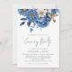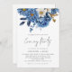 Marinho Azul Florais Qr Código Festa Noite de Casamento. Lindas flores estão no topo. Adicione seu código QR ao seu site de casamento na parte traseira ou exclua isso se não for necessário. Basta alterar o URL para o URL da página escolhida do seu site de casamento e o código QR neste design será atualizado automaticamente. Uma tipografia informal em preto para o título principal Partido da Noite complementando o resto do texto que você pode facilmente personalizar.