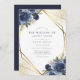Convites Marinho Azul Floral Dourado Geométrico Moderno Cas