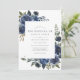 Ponha um tom romântico e rústico para o seu casamento com este convite elegante, com flores azuis marinhos de cor d'água e verde-limo. Perfeito para casais que amam uma mistura de sofisticação e beleza natural, esta design traz um charme de eterno para o seu dia especial. Os delicados detalhes florais e a paleta de cores ricas criam uma atmosfera convidativa e quente, fazer adequado para casamentos em qualquer estação. Imprima seus convidados com este convite maravilhosamente trabalhado e memorável.