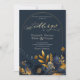 Convites Marinho Azul Flores Douradas Sai Casamento