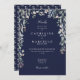 Lindas flores verdes florais e flores silvestres enquadram seus detalhes especiais de celebração de casamento em tipografia branca elegante em um fundo azul-marinho chic. Projetado por Thisnotme©