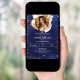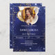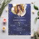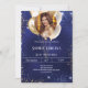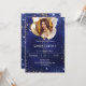 Um convite moderno, na moda e glamouroso para uma festa de aniversário 21 (ou qualquer idade). Um fundo azul marinho, decorado com faíscas douradas azuis e falsas e balões ouros. A cor azul é irregular. Personalize e adicione seu nome, foto e detalhes da festa. Um quadro fotográfico estilo bailão.