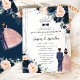 Convites Marinho Azul Gêmeas Florais Garota Quinceañera