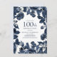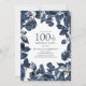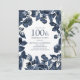 Folhas azuis/índios marinhos e florais no convite de aniversário 100º branco. Entre em contato conosco para obter ajuda sobre a personalização ou produtos correspondentes.