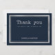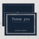 Uma máquina de escrever marinho azul e prateada com tipografia de fontes prateadas estilo rústico casamento Obrigado. É perfeito para qualquer garota refinada e sofisticada ou qualquer pessoa. Este design é ideal para um evento de festa elegante e de tendências. Personalize este design com sua mensagem e informações personalizadas. Todas as designs são impressas.