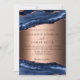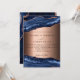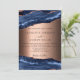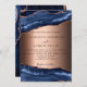Um convite de casamento moderno e moderno. Ouro azul e rosa, fundo de mármore. Personalize e adicione seus nomes e detalhes.