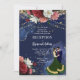 Dourada cintilação marinho azul marrom flores recepção de casamento convite modelo instantâneo. Casal de marrom dançante, brilho de ouro.