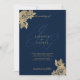 Uma elegante marinho azul monograma, iniciais na moda romântica, marinho azul, e convites de casamento floral romântico de ouro.