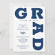 FORMANDO as curvas em negrito marinho azul de inscrição ao redor das bordas desses convites brancos de festa de formatura de fundo. CONSULTE TODA A COLEÇÃO de combinações de cores pré-feitas, placas de papel, guardanapos, caixas de favor e convites de festa de formatura em nossa loja.