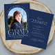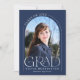 Este simples cartão de graduação minimalista azul marinho serve tanto como um anúncio de graduação quanto como convite de festas de formando, e apresenta uma foto, um quadro de arca e uma elegante tipografia moderna.