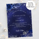 Um fundo azul marinho, decorado com falso brilho prateado, faíscas e flores azuis. A cor azul é irregular. Personalize e adicione seus nomes e detalhes.