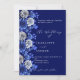Convites Marinho azul prata floral script casamento