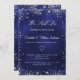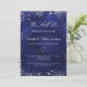 Um convite de casamento para renovação de votos moderno e elegante. fundo azul marinho decorado com faxes cintilantes prateados. A cor azul é irregular. Personalize e adicione seus nomes e detalhes da festa. Letras brancas coloridas.