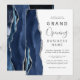 Convide os clientes para a grande abertura de sua empresa com este elegante convite moderno, com uma marinho azul de aquarela agata bordada com falso brilho prateado. O texto personalizável combina a escrita manual de cinzas de carvão, as fontes em copperplate e itálico em um fundo branco. O verso apresenta um design azul marinho e agate prateado correspondentes.