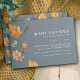 Convites simples e modernos para chuveiros de bebês com design e ilustrações de cor d'água de folhas caídas. O texto é totalmente editável; o texto do título pode ser alterado de "CHÁ DE FRALDAS" para "É UM MENINO", etc. ou qualquer verso curto. Contrastando fundo azul escuro.