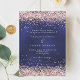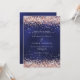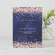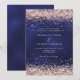 Um fundo azul marinho, a cor azul é irregular. Decorado com rosa dourado confetti. Personalize e adicione seus nomes e detalhes da festa.