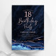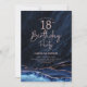 Marinho azul e rosa dourado agate 18º convite de aniversário. Elegante design moderno com cor azul-real de água agate marble geode background, faux glitter rosa gold e typografia script font. Trendy convida o cartão perfeito para uma comemoração de dia das mulheres na moda. Impressos convites Zazzle ou modelo de impressão digital instantânea para download.