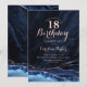 Marinho azul e rosa dourado agate 18º convite de aniversário. Elegante design moderno com cor azul-real de água agate marble geode background, faux glitter rosa gold e typografia script font. Trendy convida o cartão perfeito para uma comemoração de dia das mulheres na moda. Impressos convites Zazzle ou modelo de impressão digital instantânea para download.