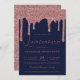 O Marinho azul e Rosa Dourado Sparkle Glitter Drips Quinceañera ou Birthday Invitation com faux glitter drips e fundo azul-marinho. Há um filtro opcional para ajudar a desativar o texto branco na parte inferior; ele pode ser desligado clicando em "personalizar mais" e excluindo essa camada. Projetado por Cedar e String. Para personalizar ainda mais, clique no link "personalizar mais" e use a ferramenta design para modificar o design. Se precisar de assistência ou itens correspondentes, entre em contato conosco em cedarandstring@gmail.com