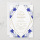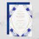 Marinho Azul Roxo, Dourado, Apelação Geométrica de Casamento. Este design apresenta um buquê de marinho de aquarela azul-roxo, marfim, azul-sábio, imagens geométricas do ouro das flores e letras douradas. Também é lindo o fundo azul-da-meia-noite de aquarela no fundo. Você pode personalizá-lo com seus detalhes de casamento.