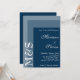 Simples e moderno roteiro de chic convite para noivas que estão adorando suas cerimônias em azul marinho. Tudo definido em uma fonte branca moderna com iniciais laterais.