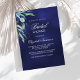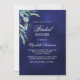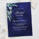 Um convite moderno, na moda, glamouroso para um Chá de panela. Um fundo azul marinho, decorado com verde. A cor azul é irregular. Personalize e adicione um nome e detalhes da parte.