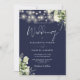 Este elegante marinho azul verde verde verde corda floral luzes convite de casamento pode ser personalizado com suas informações em tipografia quic com sua foto especial, detalhes do site de casamento e seu código QR no verso. Projetado por Thisnotme©