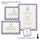 Este encantador convite dá um tom doce e sofisticado para o seu chá de fraldas. Ele apresenta um quadro clássico de gingham azul marinho em volta de um simples ursinho de pelúcia desenhado à mão. O design é uma combinação perfeita de estilos pré-filmados e clássicos, oferecendo uma maneira mínima, mas sincera, de dar as boas vindas ao seu "filhote". As linhas limpas e as imagens gentis criam um aspecto eterno, fazer-o como um guardião memorável para uma celebração tão especial. É uma design doce e subestimada para um chá de fraldas clássico.