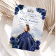 MARINHO EDITABLE Blue Dress Princesa Silver Crown Quinceañera Convite Escuro Azul Azul Elegante Glitter Mis Quince Convite Quinceañera, Mis Quince 15 Anos, 16 Anos Aniversário
