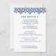 Um cartão ENCLOSURE DETAILS inspirado no mediterrâneo que apresenta uma borda em marinho extracelular e azulejo espanhol azul indigo para esta elegante e inspirada cerimônia de casamento de santorini. Você pode usar esta modelo para adicionar mais informações para convidados, como site de casamento, RSVP, informações de recepção, instruções, acomodações ou quaisquer outros detalhes de casamento que você queira incluir.