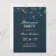 Marinho azul pintou conselhos rústicos e um conjunto de luzes para um almoço especial de aposentadoria.